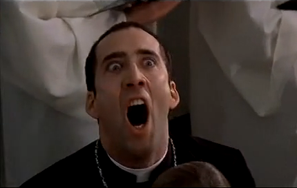 An der Stelle kann man natürlich sagen: "Er ist ein Schauspieler. Er wird angewiesen, sowas zu tun. Das macht er doch nur so, weil er Geld dafür bekommt. Alles nur gespielt!". Ach ja? Schicken wir ein Kind zur Filmvorführung von "Face/Off" (1997) und wenn es anschließend - statt ganz normal nach Monstern - nach Nicolas Cage fieser Fratze unter dem Bett ausschau hält, dann können wir John Woo fragen, ob es seine Intention war, diesen Film zum mimischen Horrorszenario zu gestalten, because Nicolas Cage...
